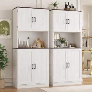 Classic Farmhouse Design: This kitchen storage cabinet features a classic American farmhouse style, blending classic colors and fluted cabinet doors. The Farmhouse Kitchen Cabinet combines fashion with functionality. Perfect for kitchen organizers and storage, it seamlessly fits into kitchen and dining room settings, enhancing your home’s rustic charm.