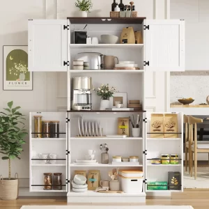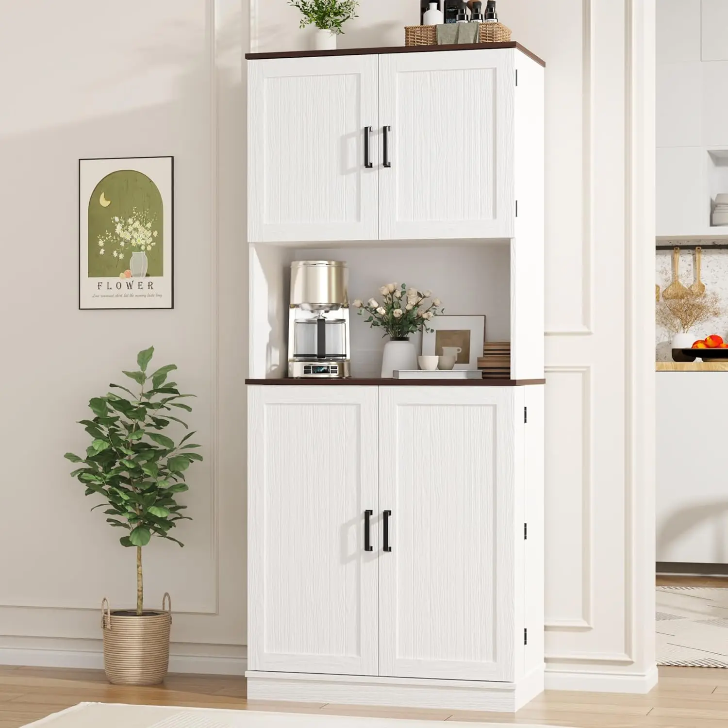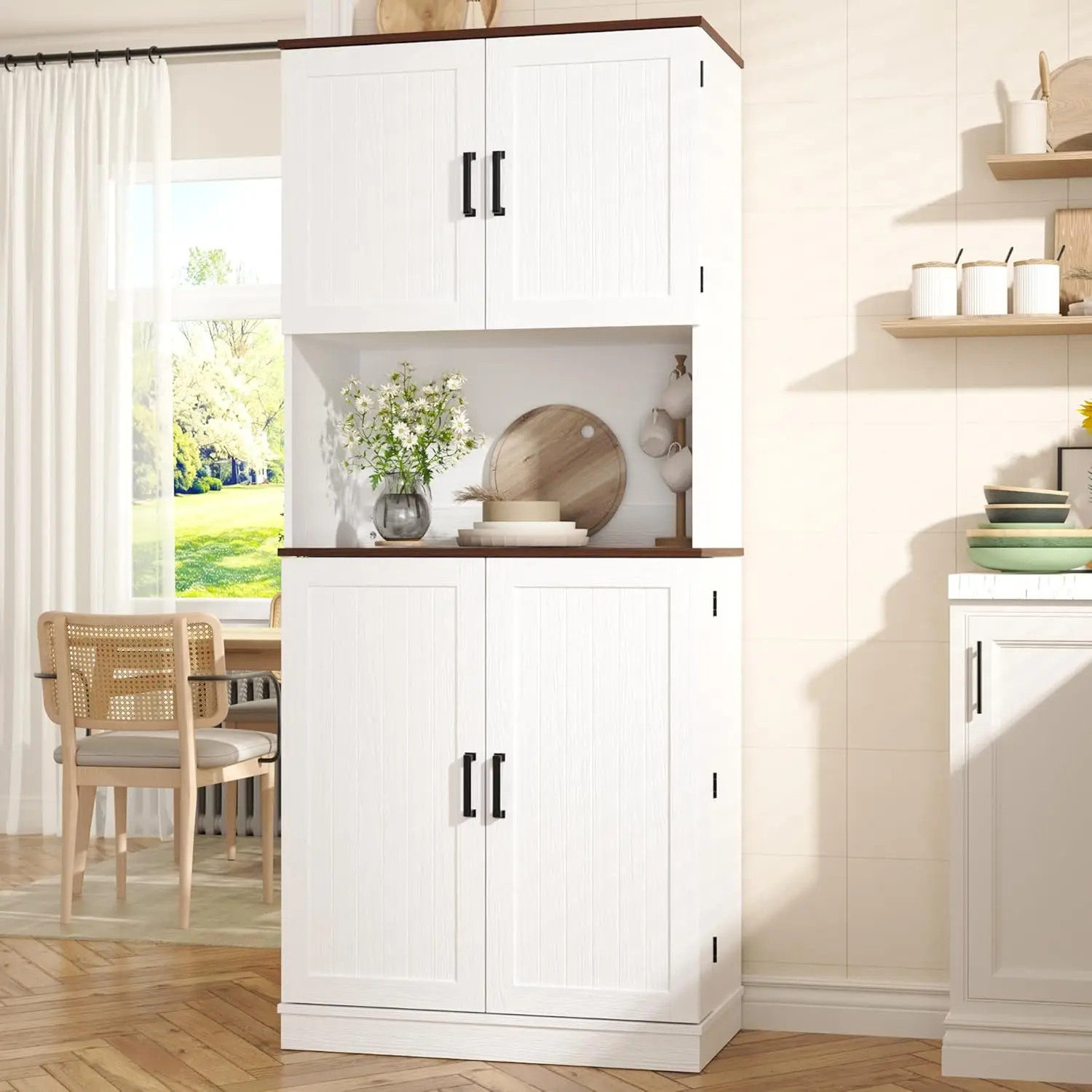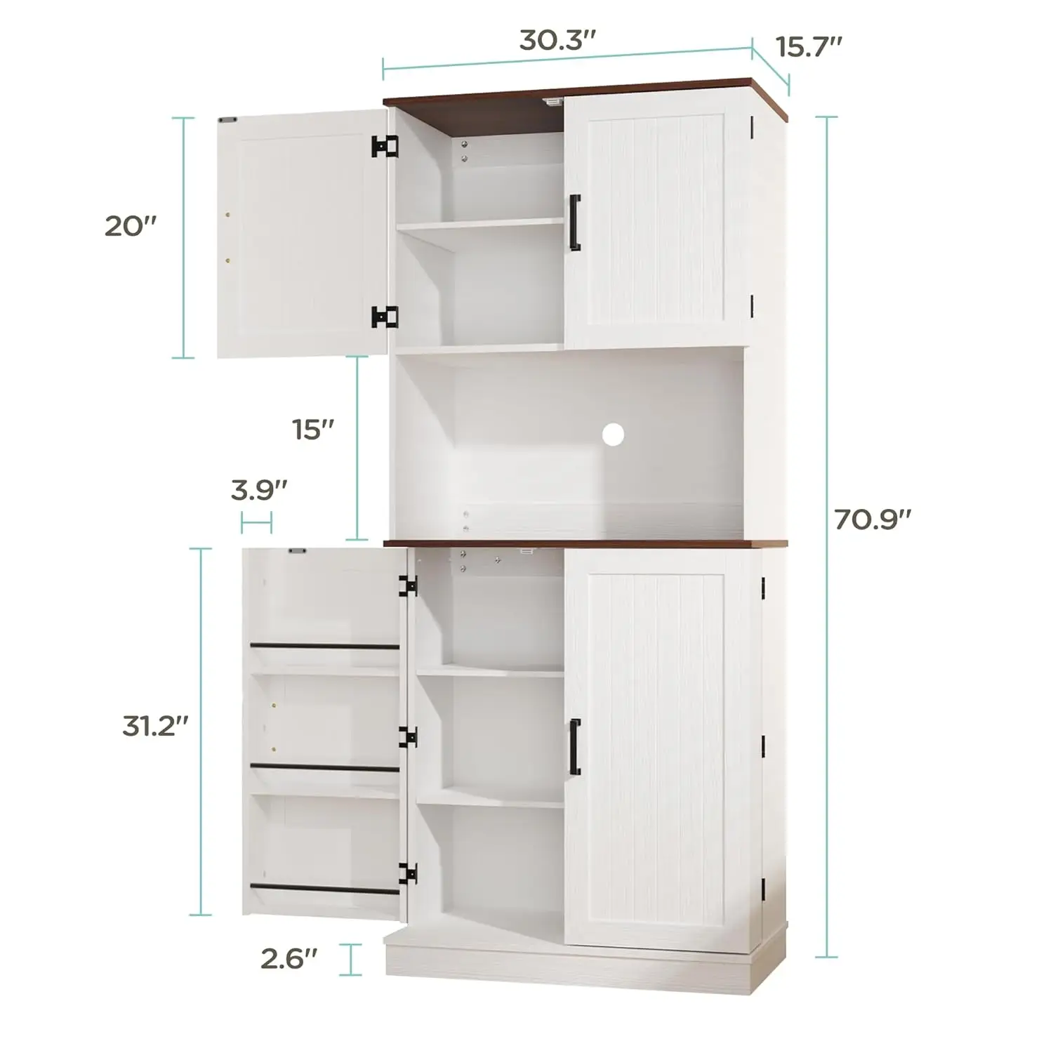 71″ Tall Kitchen Pantry Cabinet, Farmhouse Kitchen Storage Cabinet with 6 Hanging Shelves and Adjustable Shelves,, Customized