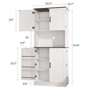 Ample & Adjustable Storage: The hutch cabinet with storage offers adjustable interior shelves, allowing you to customize the space for coffee supplies, dishes, or kitchen accessories. Ideal for kitchen pantry storage, it keeps your kitchen cabinets with countertop organized and clutter-free. Overall Dimensions: 15.7″D x 30.3″W x 70.9″H