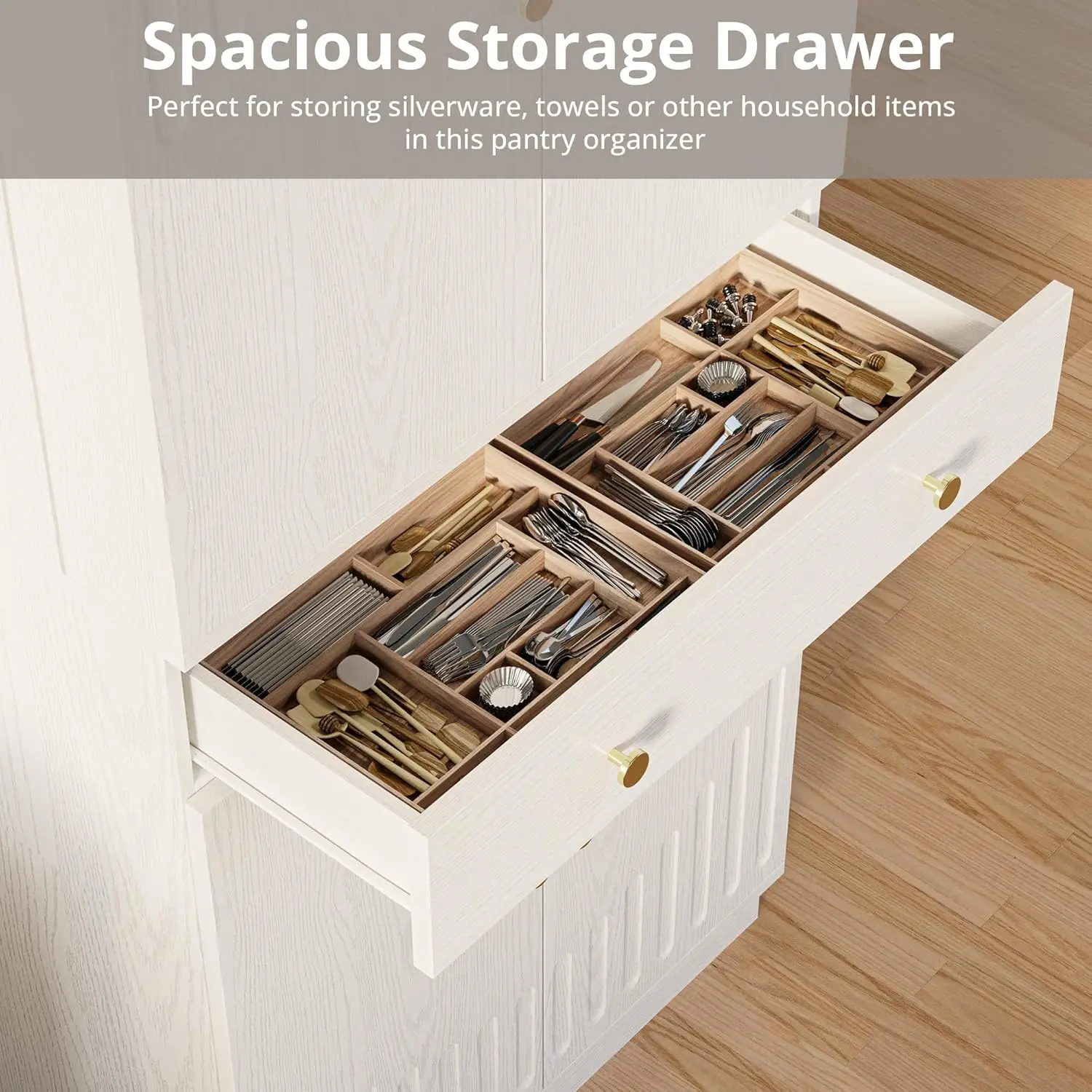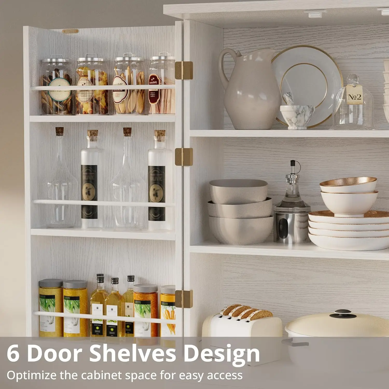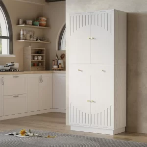 Unique & Versatile Pantry: Unique arched cabinet doors and elegant golden handles enhance any space. This versatile cabinet easily fits into your kitchen, dining room, bathroom, or study, bringing both style and order